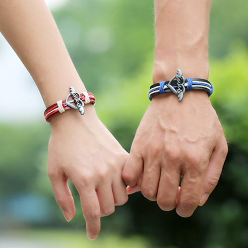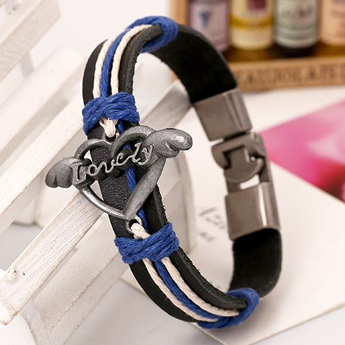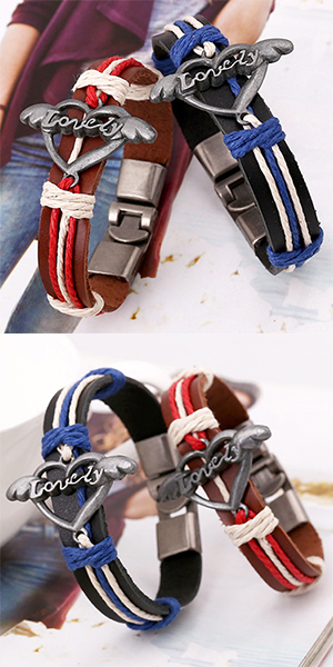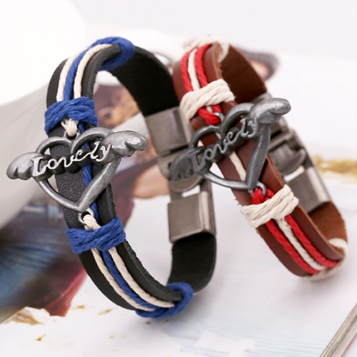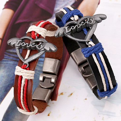 Fashion LOVE Heart Leather Wrap Couple Bracelet Set