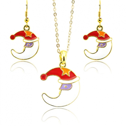 Fashion Lovely Moon Shaped Pendant Necklace Earring Set