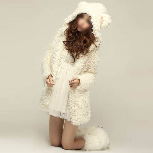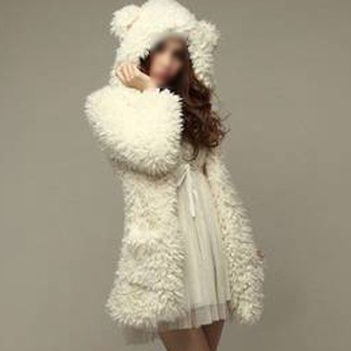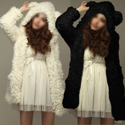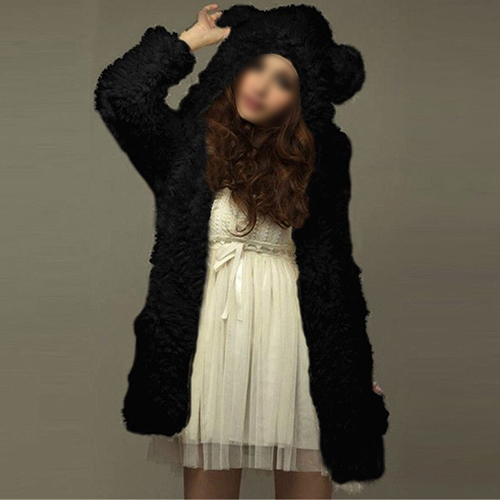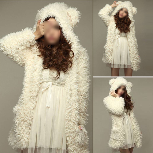 Fashion Lovely Solid Color Ears Shaped Hoodie Woolen Cardigan Coat