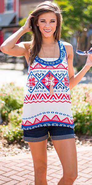 Slip into this breezy tank top in hot days! Features abstract and chic printed,