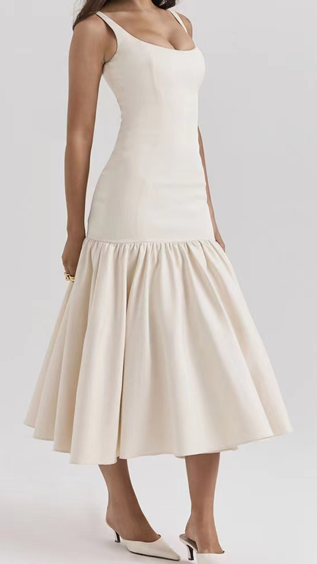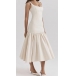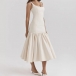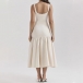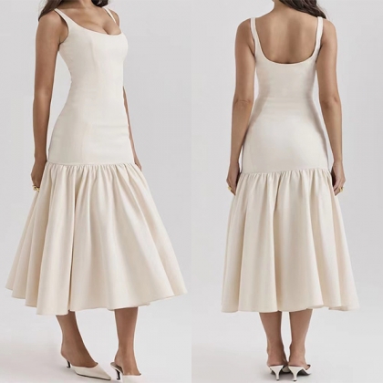 Fashion Low-cut Square Neck Backless Pleated Hemline Midi Dress