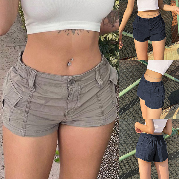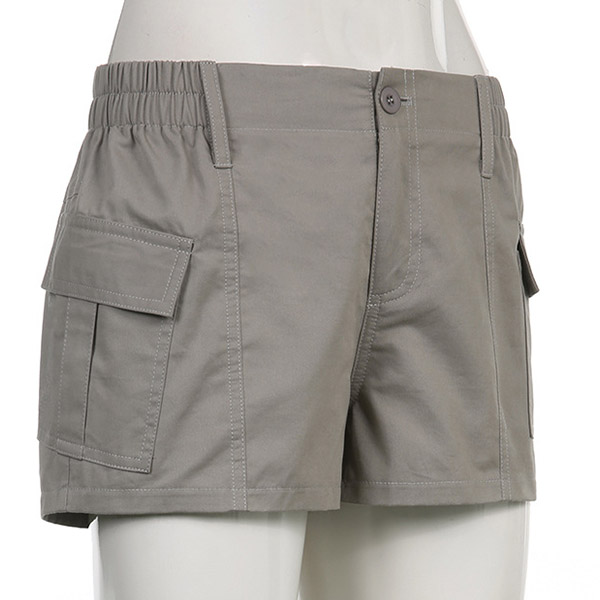How about this shorts? The low-rise waistline creates a sleek, modern silhouette that accentuates the hips and midsection. The side patch pockets add a utilitarian, sporty-chic element to the shorts. They provide both style and functionality.