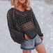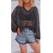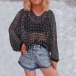 Fashion Mesh Netted Long Sleeve V-neck Cover-up Shirt