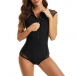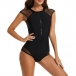 Fashion Mesh Spliced Half Zipper Cap Sleeve One-piece Swimsuit/Monokini