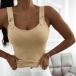 Fashion Metal Button Square Neck Ribbed Cami Shirt