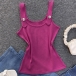 This stylish and versatile shirt is a must-have for any fashion-forward individual. The square neck design adds a modern and chic touch, while the ribbed texture gives it a luxe and sophisticated look. The metal button on the shoulder strap detailing adds a hint of edge and elevates the overall aesthetic of the shirt. Pair it with high-waisted jeans for a fashion look~