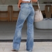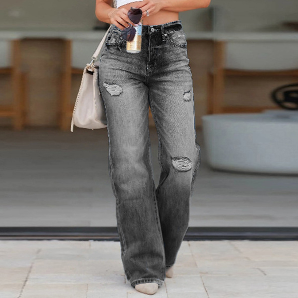 Fashion Mid-rise Distressed Straight-cut Old-washed Jeans