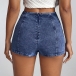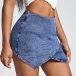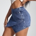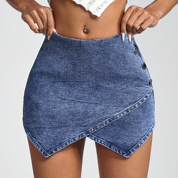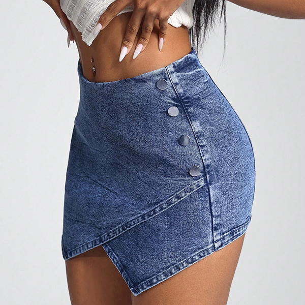 Fashion Mid-rise Irregular Hemline Side Button Old-washed Denim Skorts