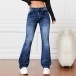 These denim jeans feature a mid-rise fit, old-washed finish, and slight-flared silhouette, creating a trendy and retro-inspired look. Pair them with a tucked-in blouse and platform heels for a 70s-inspired look, or style them with a graphic tee and sneakers for a more modern and casual ensemble.