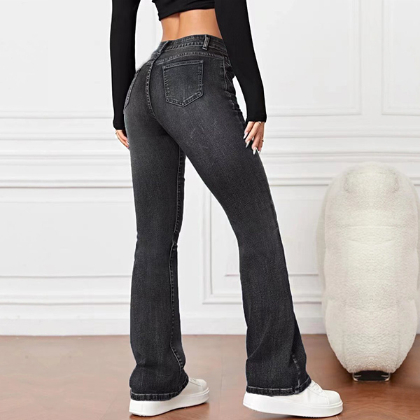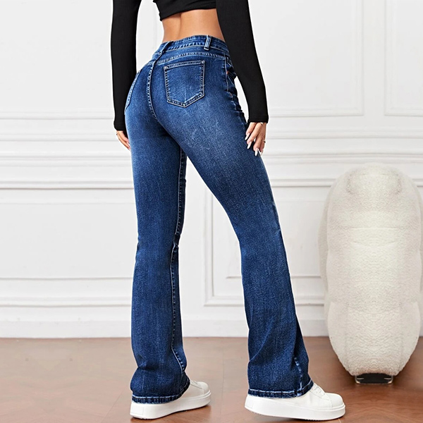 Fashion Mid-rise Old-washed Slight-flared Denim Jeans