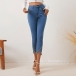 Fashion Mid-rise Rivet Fray Hemline Skinny Denim Jeans