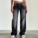 Fashion Mid-rise Straight-cut Old-washed Denim Jeans