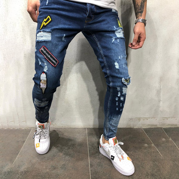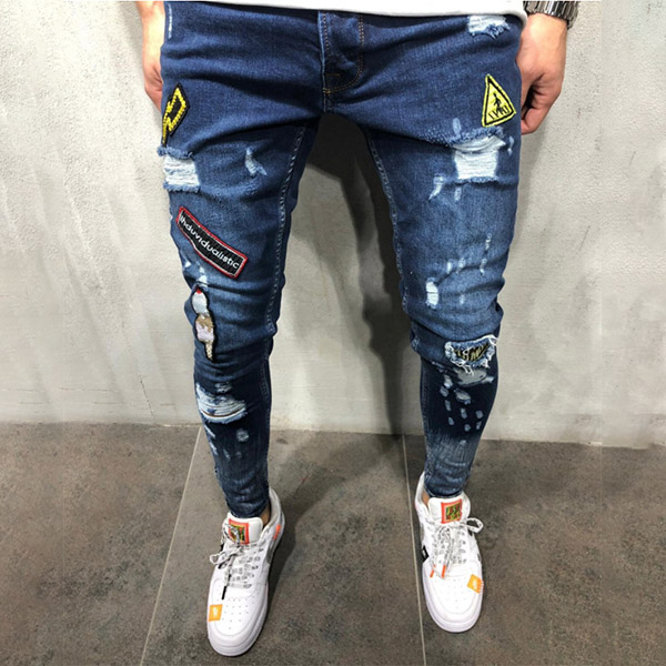 Jeans tendance pour hommes avec fermeture éclair avant et taille moyenne