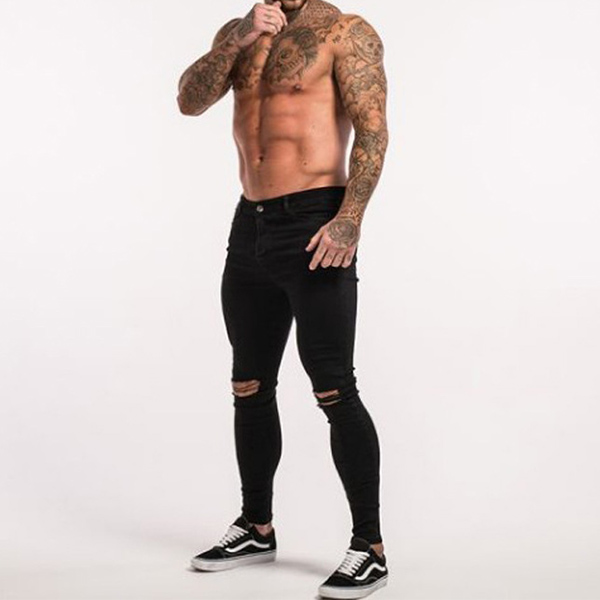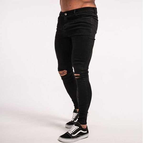 a classic yet stylish black tone,finished with middle waist,a fit silhouette and hollow out ripped details,this