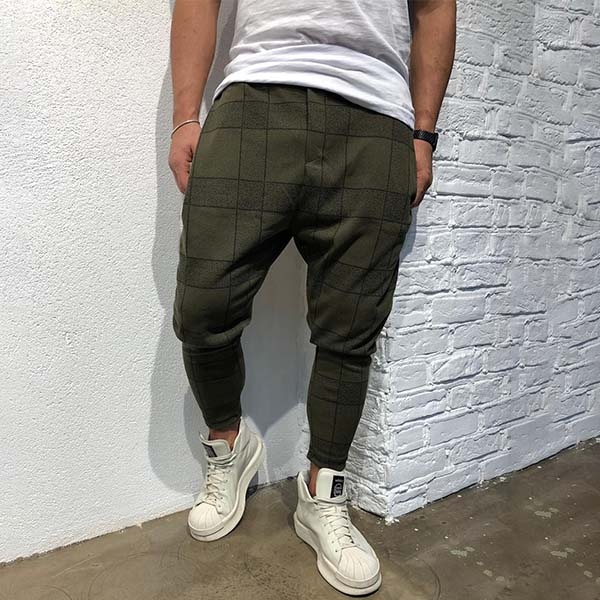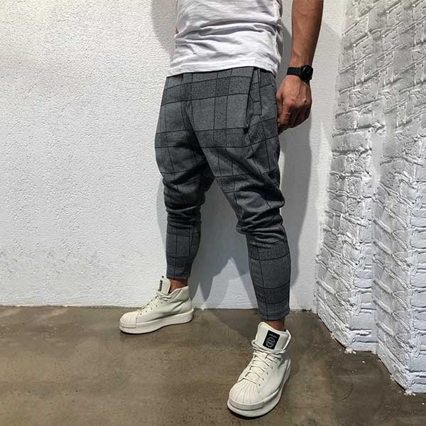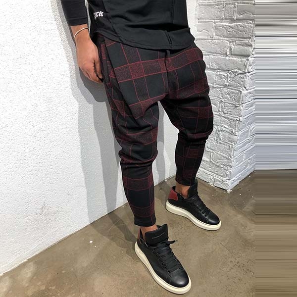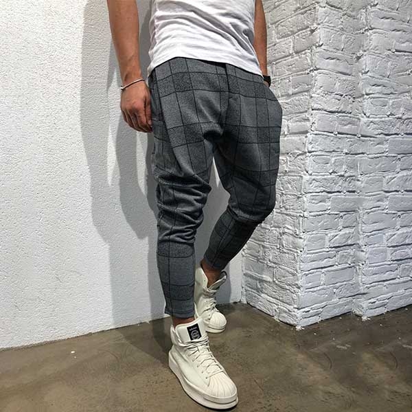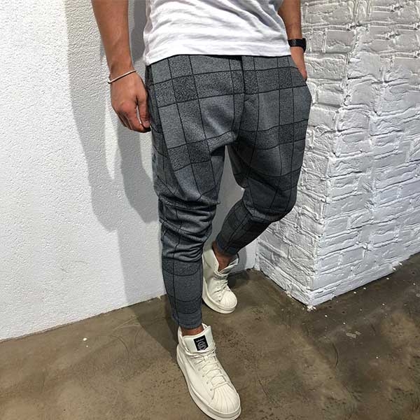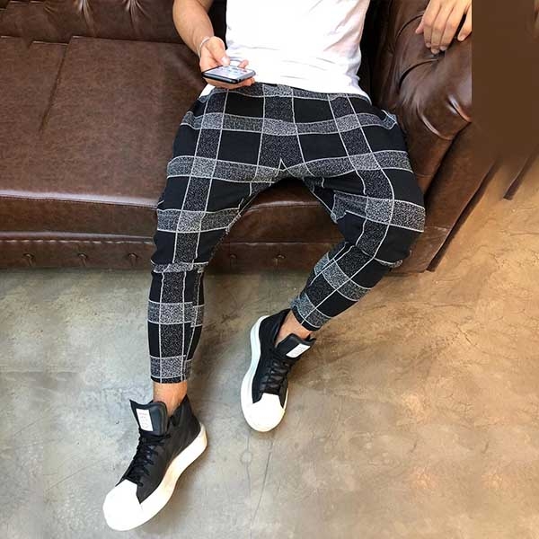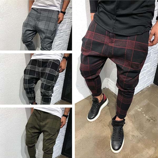 Hey,man,you can slip into this pants to have a casual and relaxed style. The plaid element design