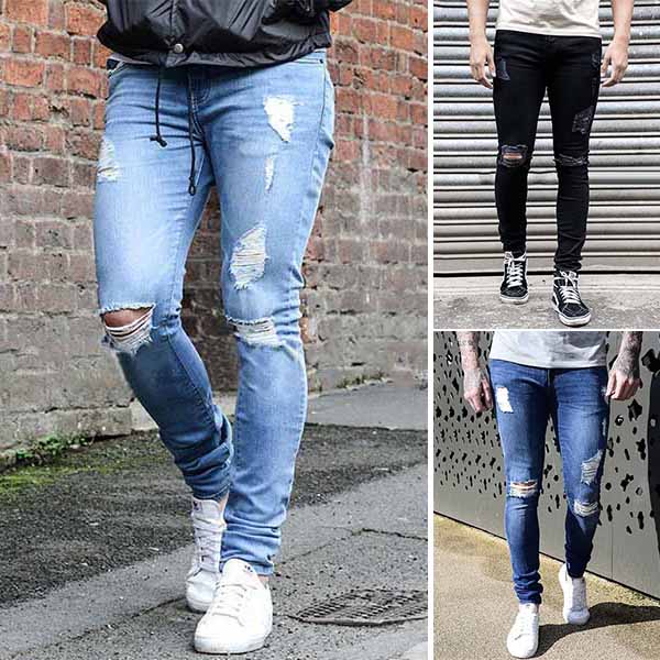to look fashionable and handsome! Outfitted with middle waist,skinny silhouette and ripped details,