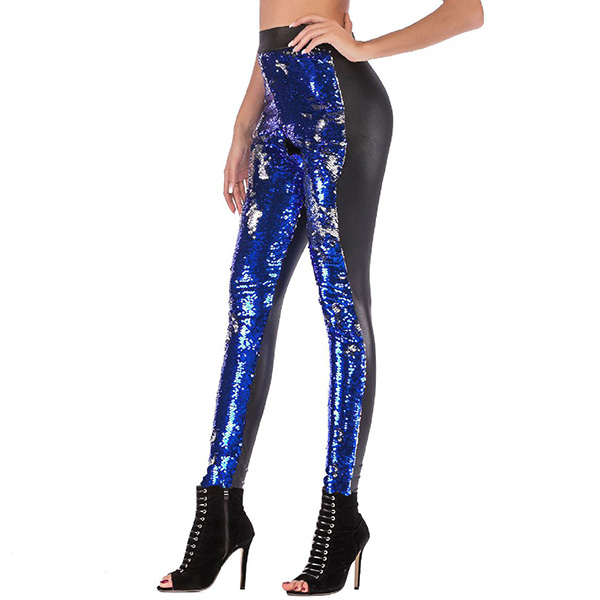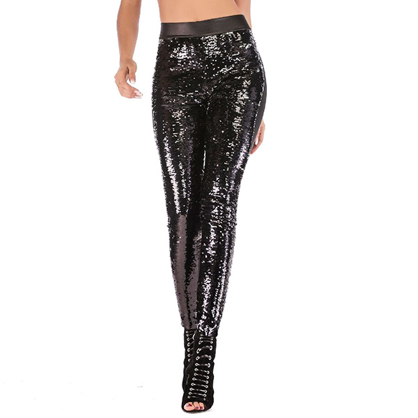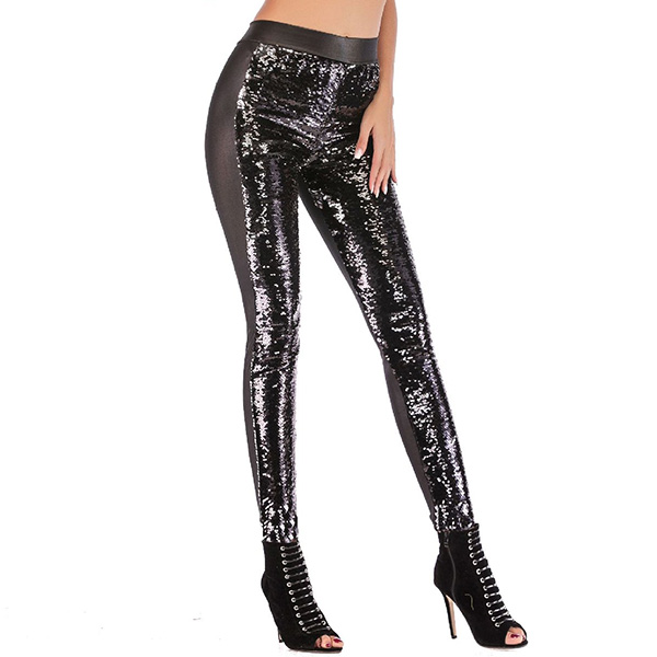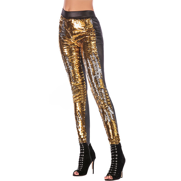 Fashion Middle Waist Slim Fit Discolor Sequin Stretch Leggings