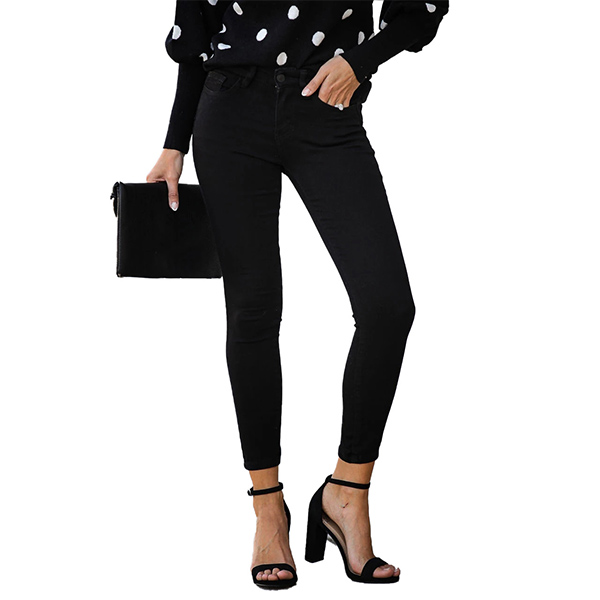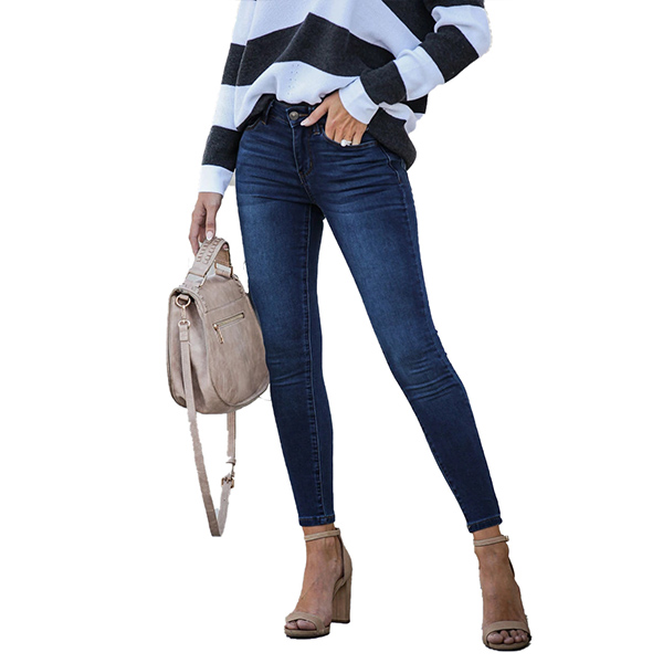 Every girl's wardrobe needs such a stylish and all-match jeans. So what are you waiting for if you still not have one? This piece is designed with middle waist and a fit silhouette,which can showcase your slender legs. No matter what kind of tops you pair with,it can hardly go wrong!