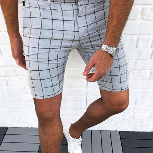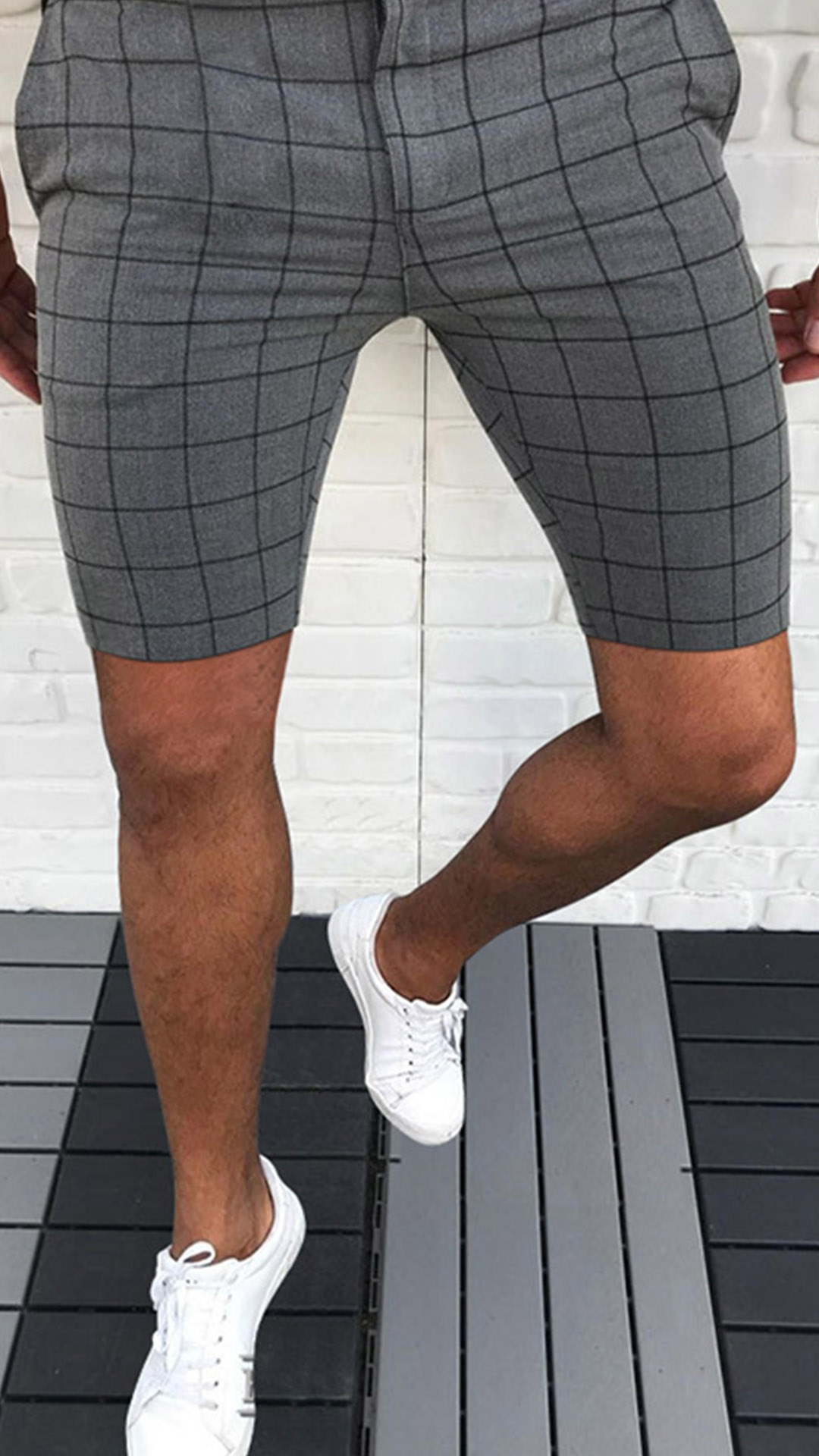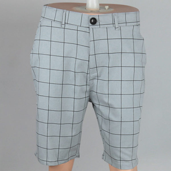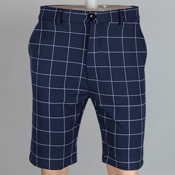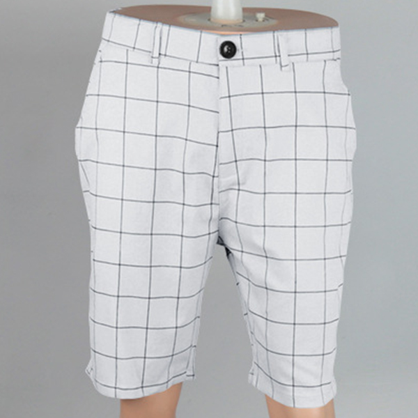 Fashion Middle Waist Slim Fit Man's Knee-length Plaid Shorts