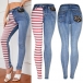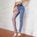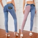 Fashion Middle Waist Slim Fit Striped Spliced Skinny Jeans