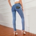 You are sure to gain more eyes when you go out with this jeans. The middle waist and fit silhouette design can better showcase your slender legs,while the stripe spliced design breaks the classic design style. On the contrary,it can better exude your personality.