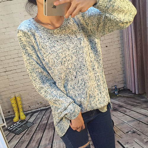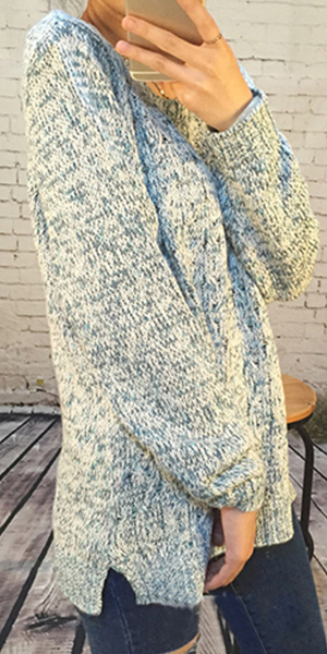 Fashion Mixed Color Long Sleeve Round Neck Knit Sweater
