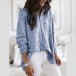 Fashion Mixed Color Long Sleeve V-neck Knit Top