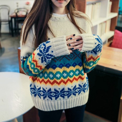 I am sure you will stand out from the crowd in this must-have sweater. Features comfortable and warm material,mixed color design,round neck and long sleeve,very comfortable to wear. You can pair with your coat in winter or a shirt underneath in fall.