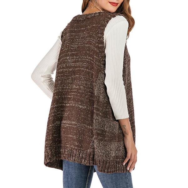 For these neither too cold days nor too hot days,this knit vest can be your new darling. Mixed color design makes it look not so simple and dull. Finished with sleeveless,v-neck and front-pocket design,this piece not only can keep you feeling warm and comfy,but also can maintain your style.