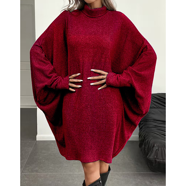 Fashion Mock Neck Batwing Long Sleeve Shirt