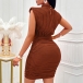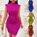 Fashion Mock Neck Cap Sleeve Stripe Printed Bodycon Dress