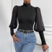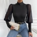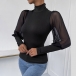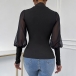 Fashion Mock Neck Gauze Spliced Long Sleeve Shirt