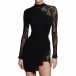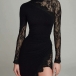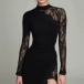 Command attention in this intricately detailed bodycon dress that masterfully layers sophisticated elements for striking impact. The refined mock neckline brings modern elegance and structured sophistication, while long sleeves offer graceful coverage with polished appeal. Delicate lace splicing introduces romantic texture and artisanal craftsmanship, creating beautiful visual contrast throughout the design. A daring side slit adds sultry allure and leg-baring confidence, while an irregular hemline brings dramatic movement and contemporary edge. Pair with pointed-toe heels to elongate the silhouette, and add statement earrings to draw attention to the elegant neckline.
