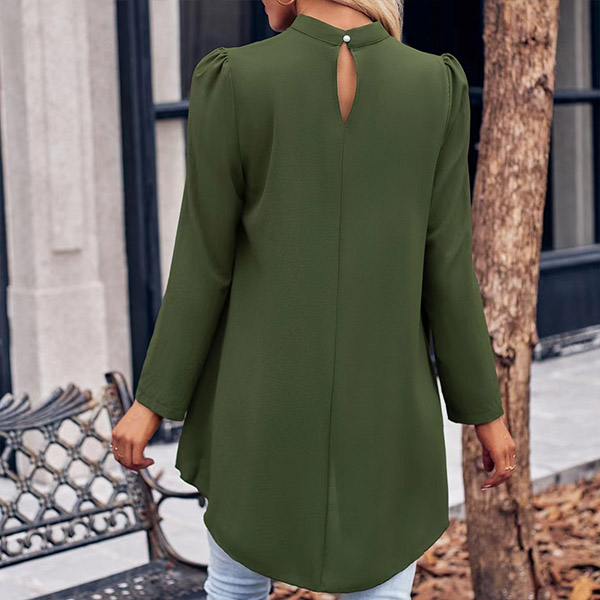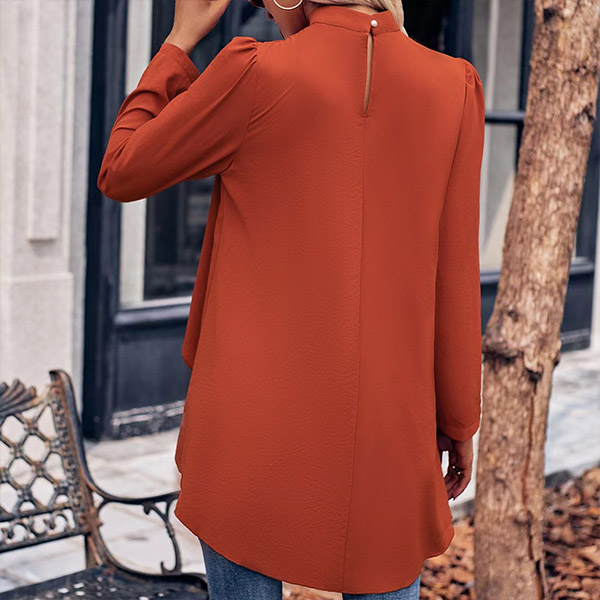 Fashion Mock Neck Long Sleeve Chiffon Mock-two-piece Shirt