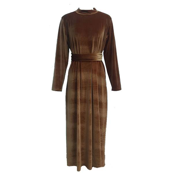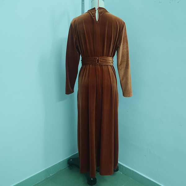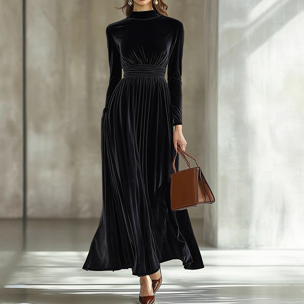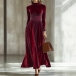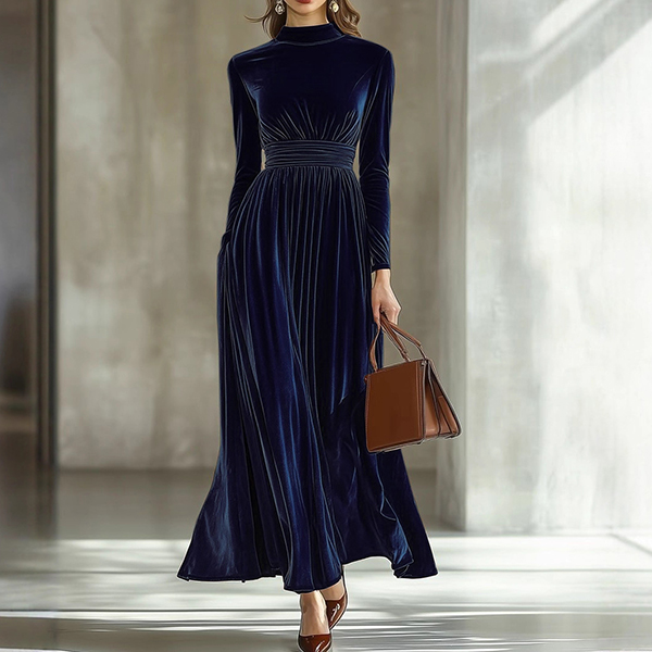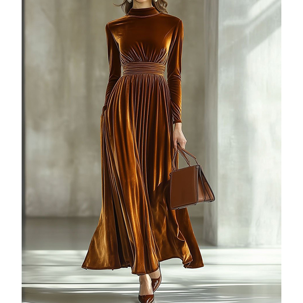 Fashion Mock Neck Long Sleeve Cinch Waist Vevlet Dress