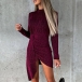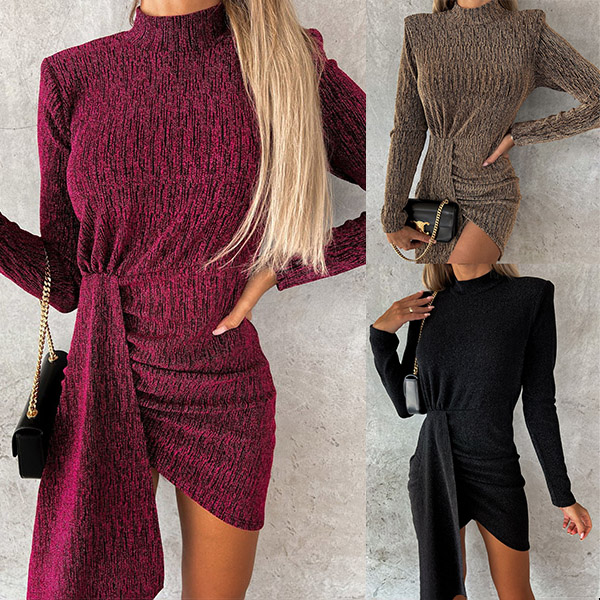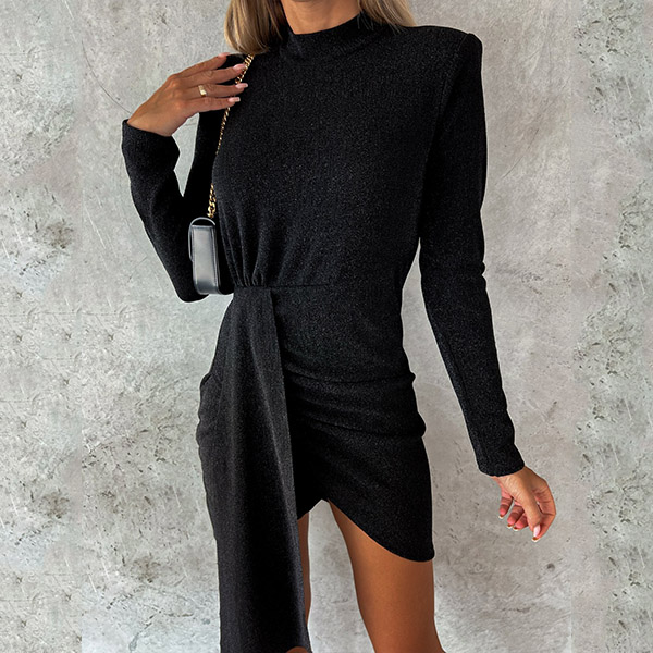 How about this dress? The bodycon fit is designed to flatter your figure while the long sleeves provide a touch of warmth. The mock neck and irregular hemline add a touch of edge to any look. Whether you’re headed to a party or a night out on the town, this dress is sure to make you stand out. The fabric is lightweight and comfortable, making it perfect for any occasion.