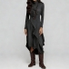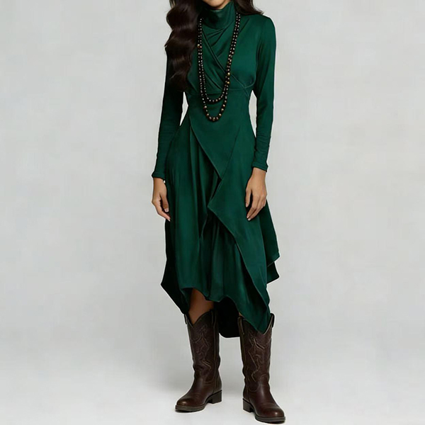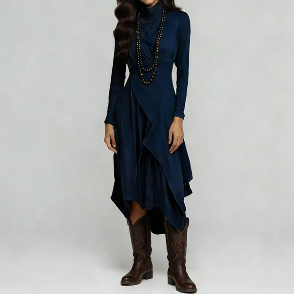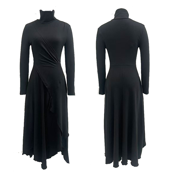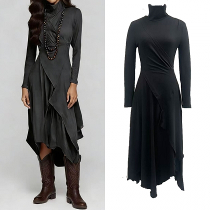 Fashion Mock Neck Long Sleeve Irregular Slit Hemline Dress