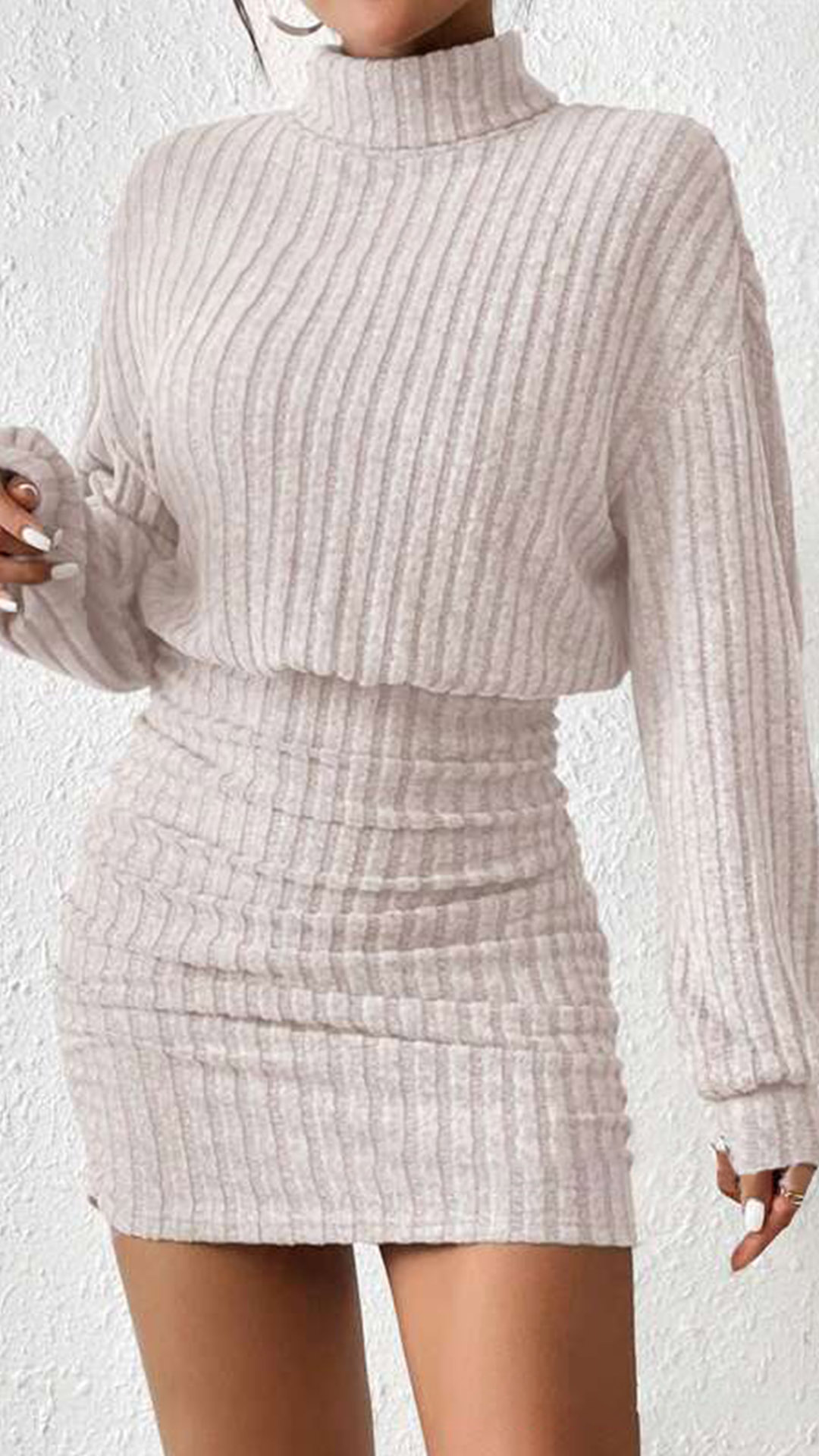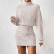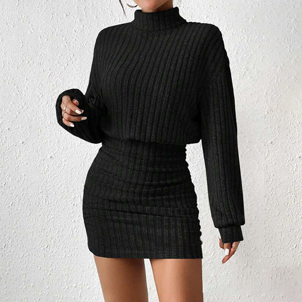 Fashion Mock Neck Long Sleeve Ribbed Bodycon Dress