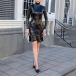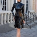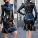 Fashion Mock Neck Long Sleeve Ruffle Hemline Artificial Leather PU Bodycon Dress