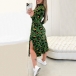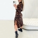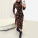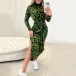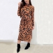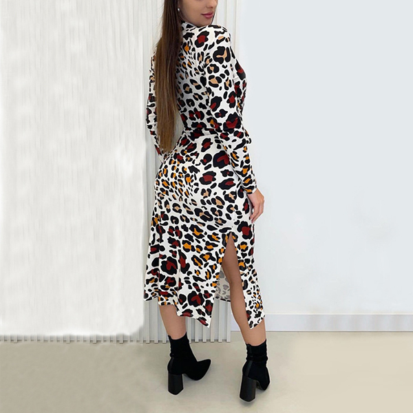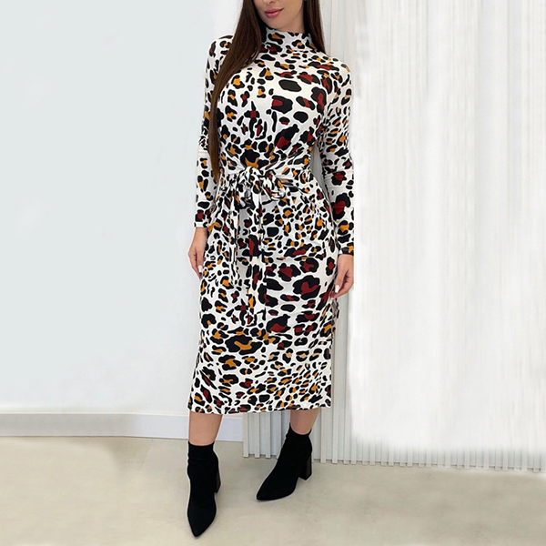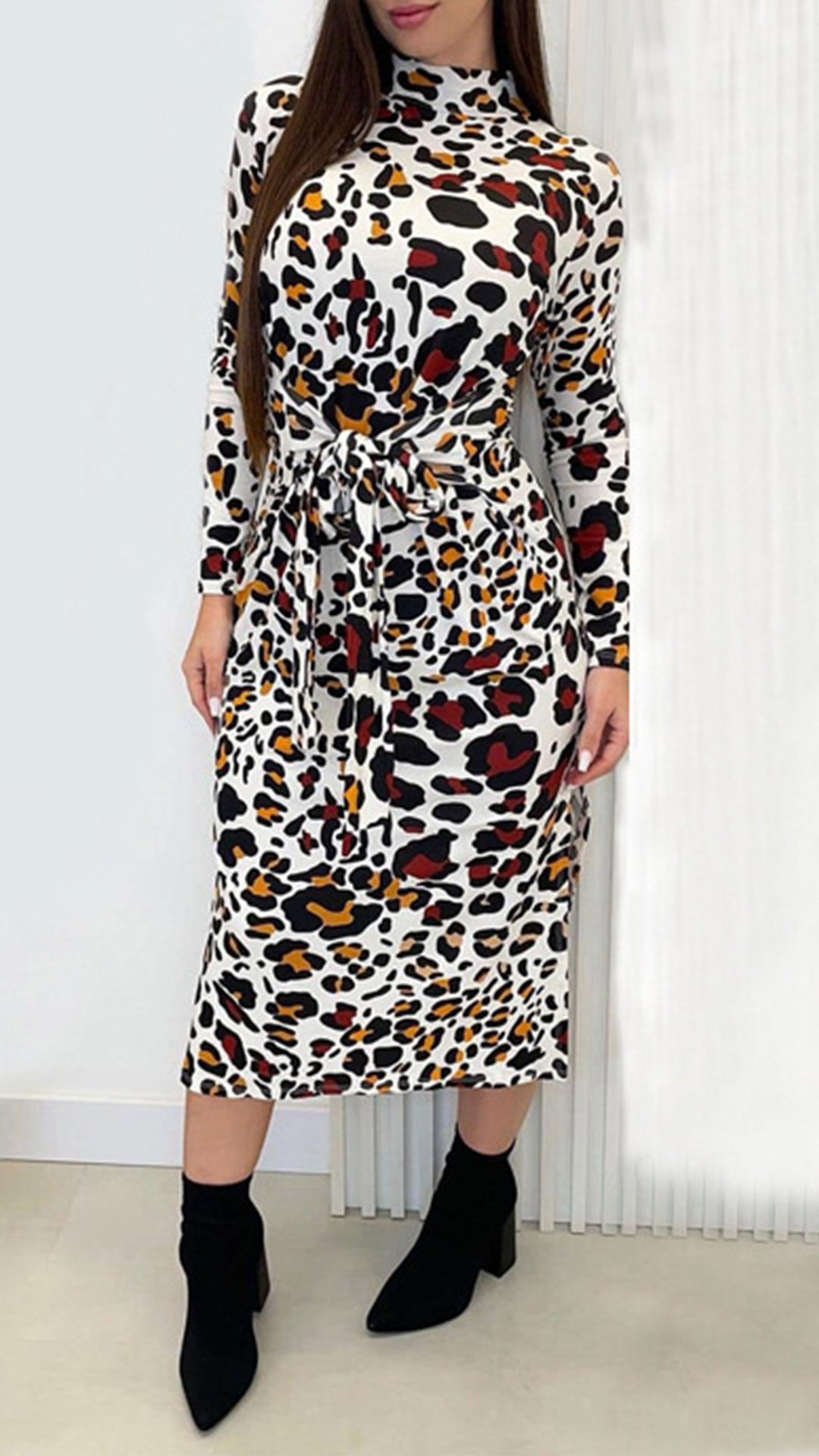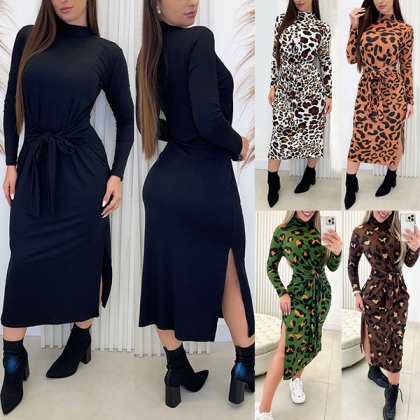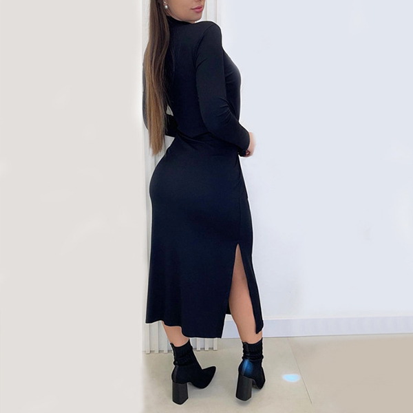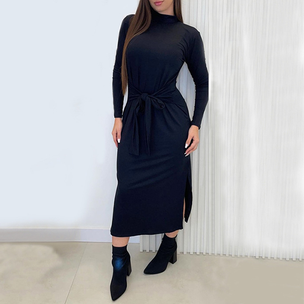 Fashion Mock Neck Long Sleeve Slit Self-tie Midi Dress