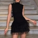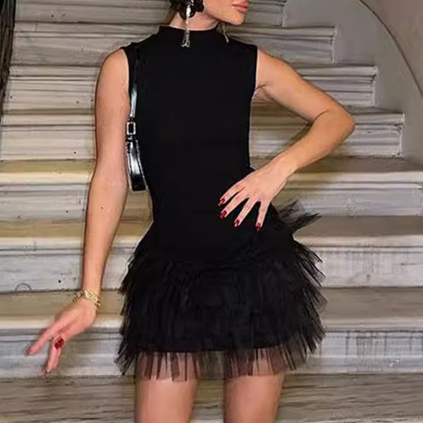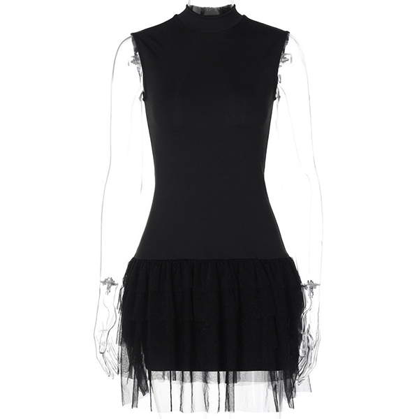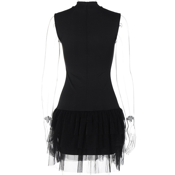 Fashion Mock Neck Sleeveless Gauze Spliced Hemline Tutu Tank Dress