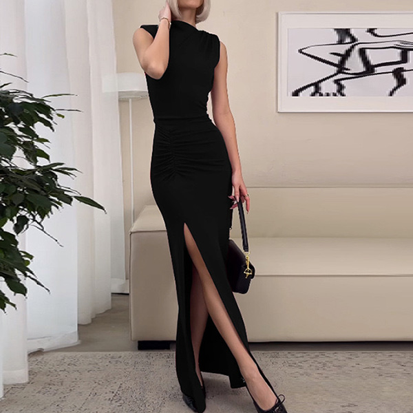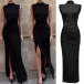 Fashion Mock Neck Sleeveless Side Slit Maxi Dress