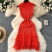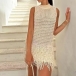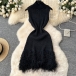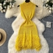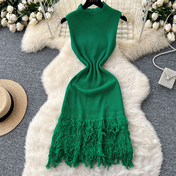 Fashion Mock Neck Sleeveless Tassel Hemline Hollow Out Knitted Mini Dress