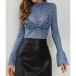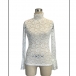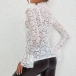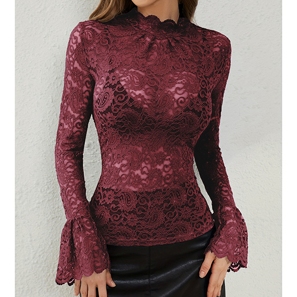 Fashion Mock Neck Trumpet Long Sleeve Semi-through Lace Shirt