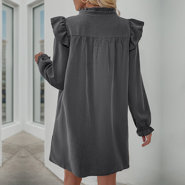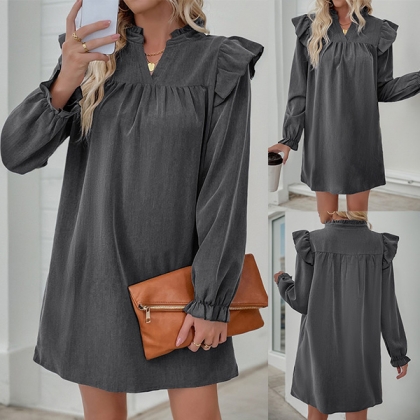 Fashion Mock Neck V-NecK Ruffle Long Sleeve Mini Dress