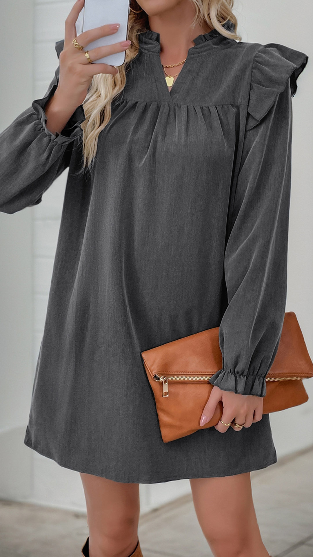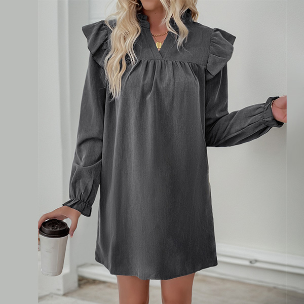 Crafted from high-quality fabric, this dress is designed to be comfortable, durable, and easy to style. I like the ruffle details on the shoulder, and you?