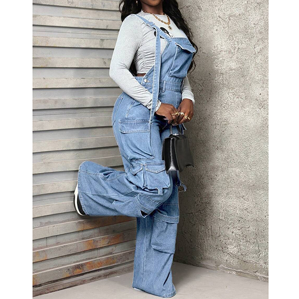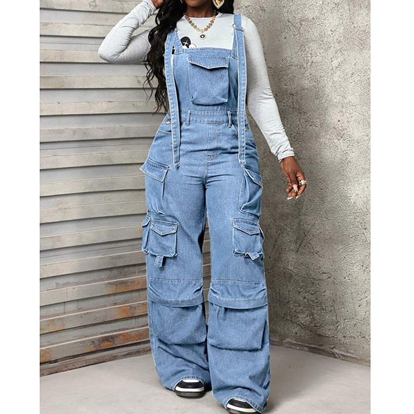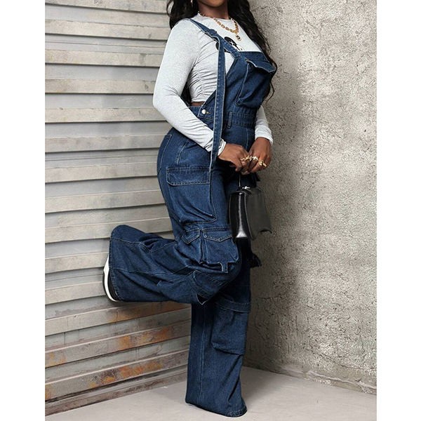 This versatile jumpsuit features classic suspender styling with practical multi-pocket design and vintage old-washed denim for timeless casual sophistication. Perfect for casual weekend wear, vintage-inspired styling, or relaxed outdoor activities.