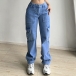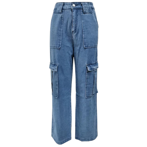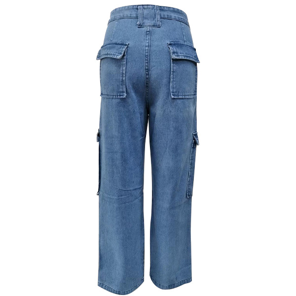 These jeans feature a wide-leg design that is both comfortable and flattering, with a high-waisted cut that accentuates the waistline and elongates the legs. The multi-pocket design adds a practical and functional touch, while also creating a unique and fashionable look.