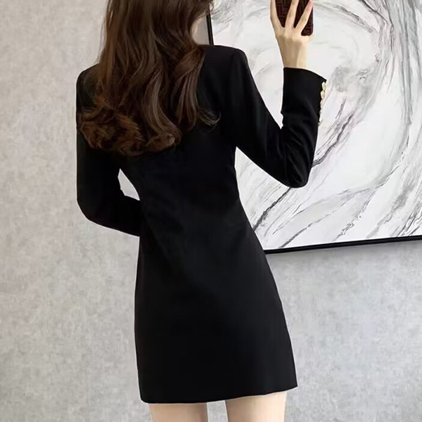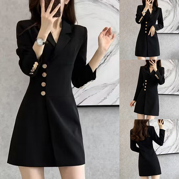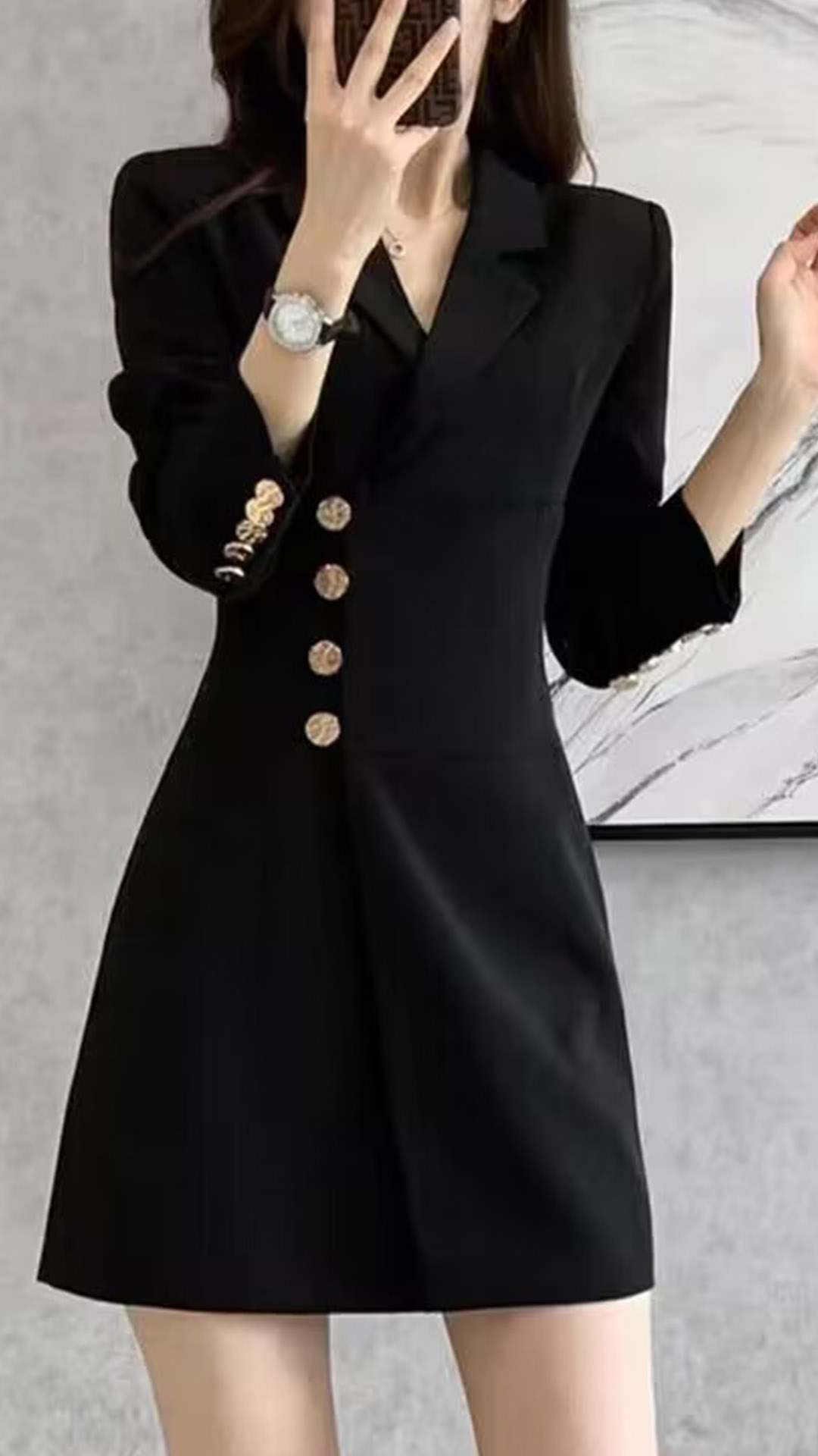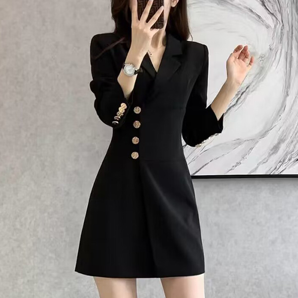 Fashion Notch Lapel Buttoned Long Sleeve Suit Dress