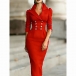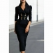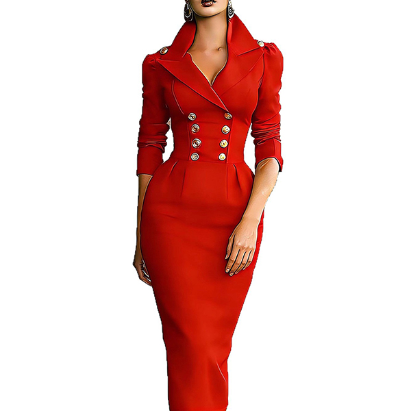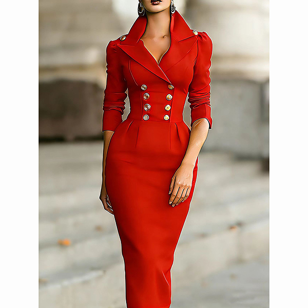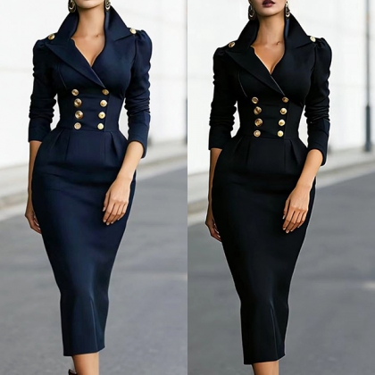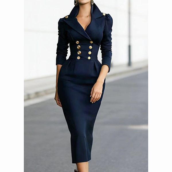 Fashion Notch Lapel Double-breasted Long Sleeve Bodycon Dress